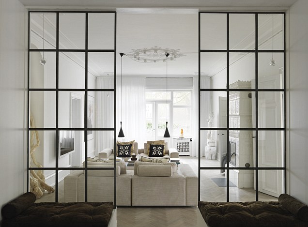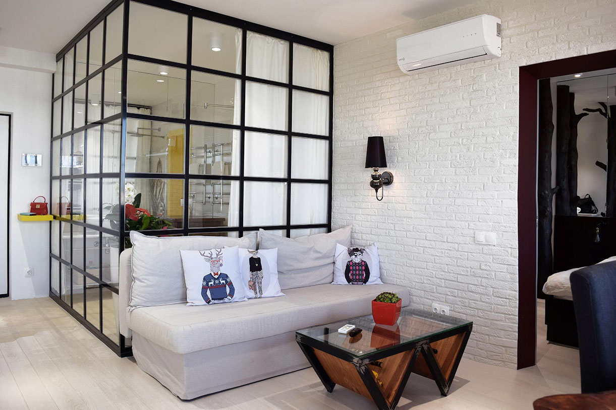 Стеклянные перегородки используют для стильного зонирования как жилых, так и коммерческих пространств.